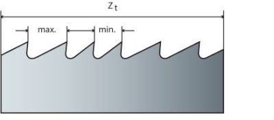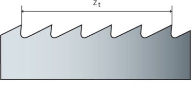 齿距 (tpi) 描述的是每英寸的齿数(1 英寸 = 25.4 毫米)。对于带锯条,有恒定齿距和可变齿距之分。